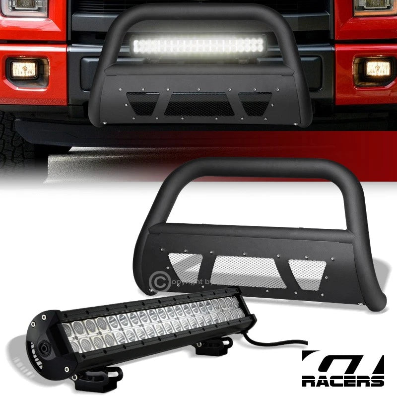 For 2004-2023 F150 Matte Black Studded Mesh Bull Bar Guard+120W CREE LED