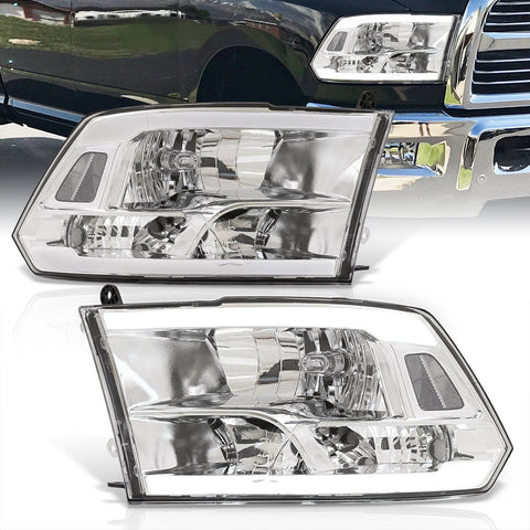 Dodge Ram 1500 2009-2018 / Ram 2500 3500 2010-2018 LED DRL Bar Factory Style Headlights Chrome Housing Clear Len Clear Reflector (Dual / Quad Models Headlamps Only)