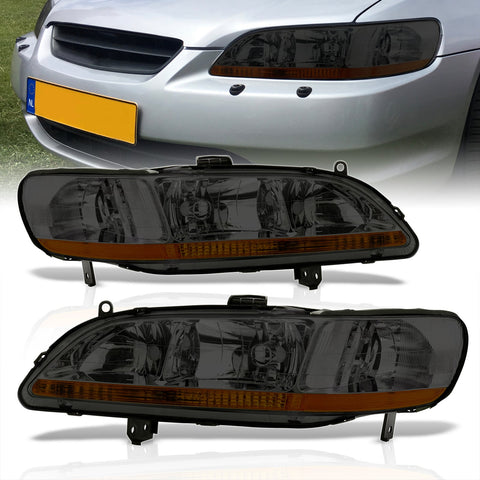 Honda Accord 1998-2002 Factory Style Headlights Chrome Housing Smoke Len Amber Reflector