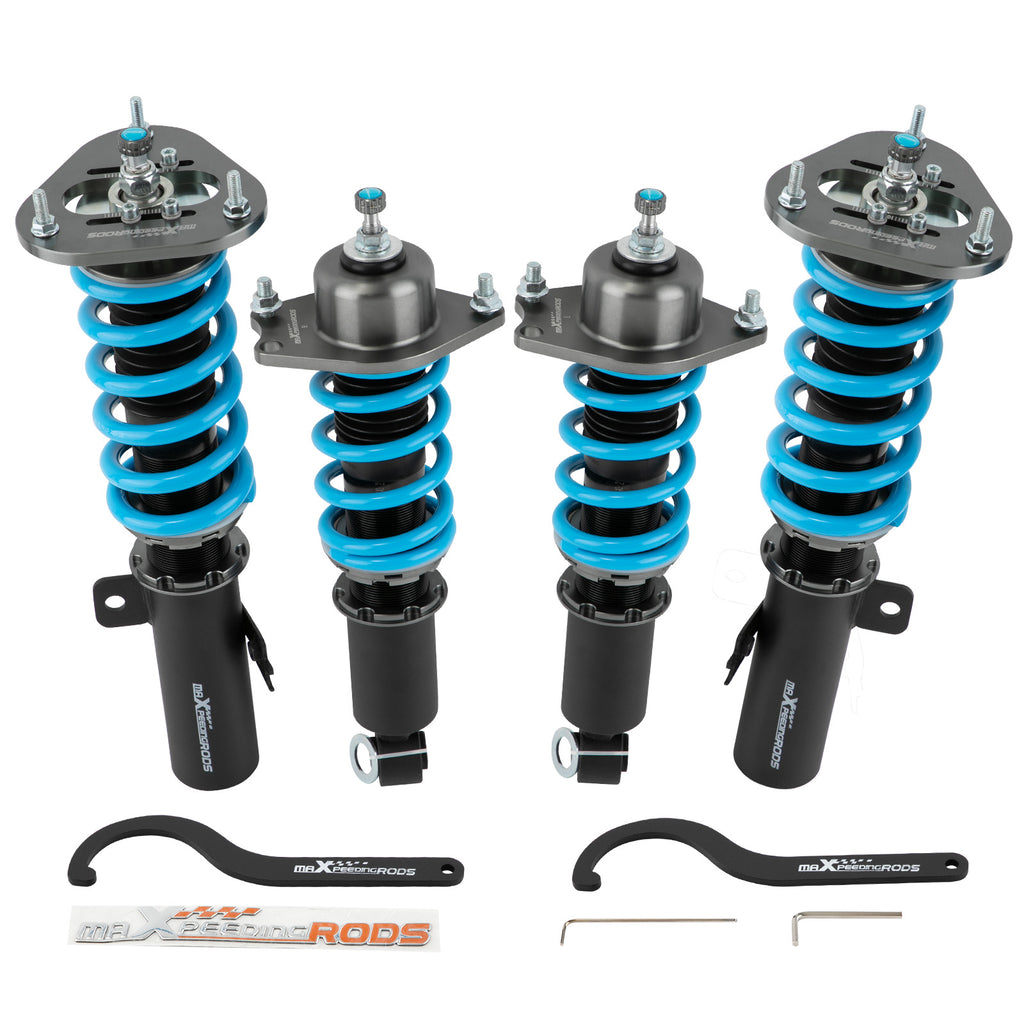 4. 24 levels of adjustable damper -- This allows you the ability to perfectly dial in your coilovers system. For a nice comfortable driving, set damping to full soft. For more spirited driving, set it to 16 clicks. For occasional track days, set it to full stiff.