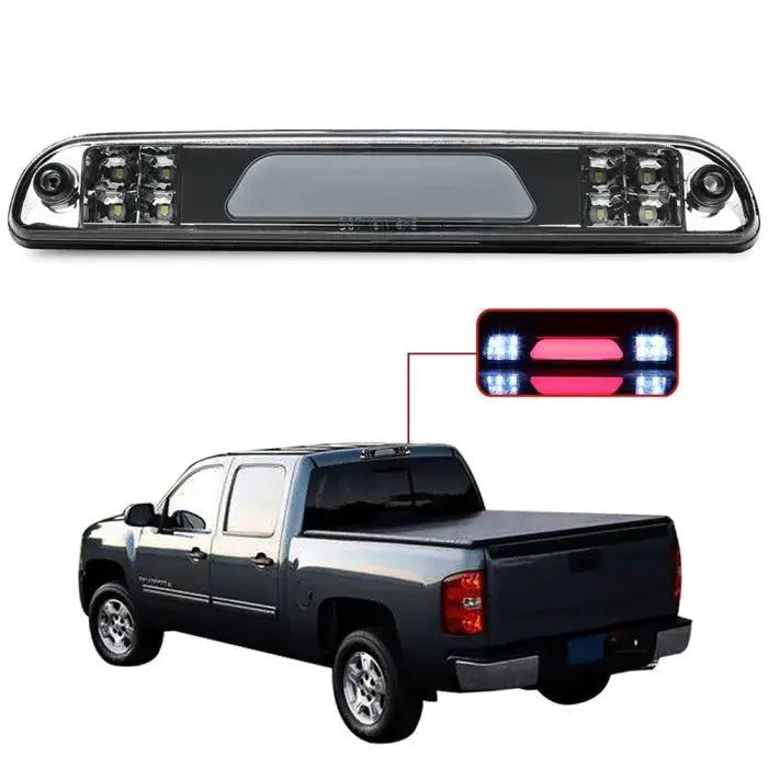 Our LED third brake light is a quick and easy way to dress up your pickup truck. When lit, the bright LEDs (Light Emitting Diodes) are illuminated, and shine up to ten times brighter than standard light bulbs. Even when the brake is not pressed, the integrated cargo light (if equipped) gives off plenty of white light to view your gear in the truck bed. The LED third brake light has a durable polycarbonate lens with free form reflector, and available with either the Clear lens or custom Smoked lens.