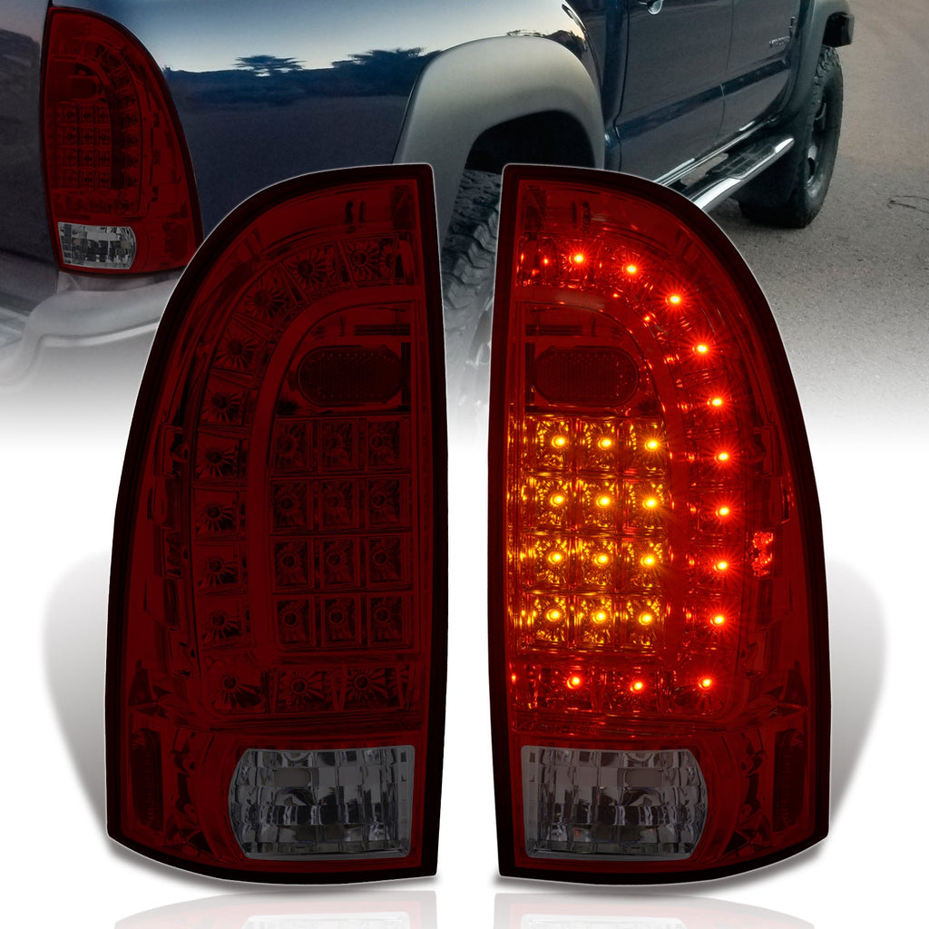 Toyota Tacoma 2005-2015 LED Tail Lights Chrome Housing Red Smoke Len