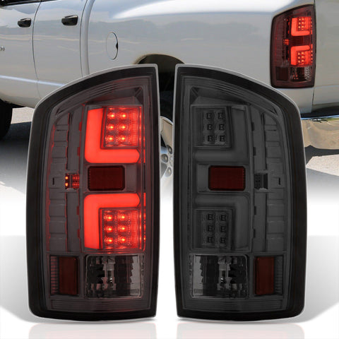 Dodge Ram 1500 2002-2006 / 2500 3500 2003-2006 LED Bar Tail Lights Black Housing Clear Len Red Tube (Excluding OEM LED Models)