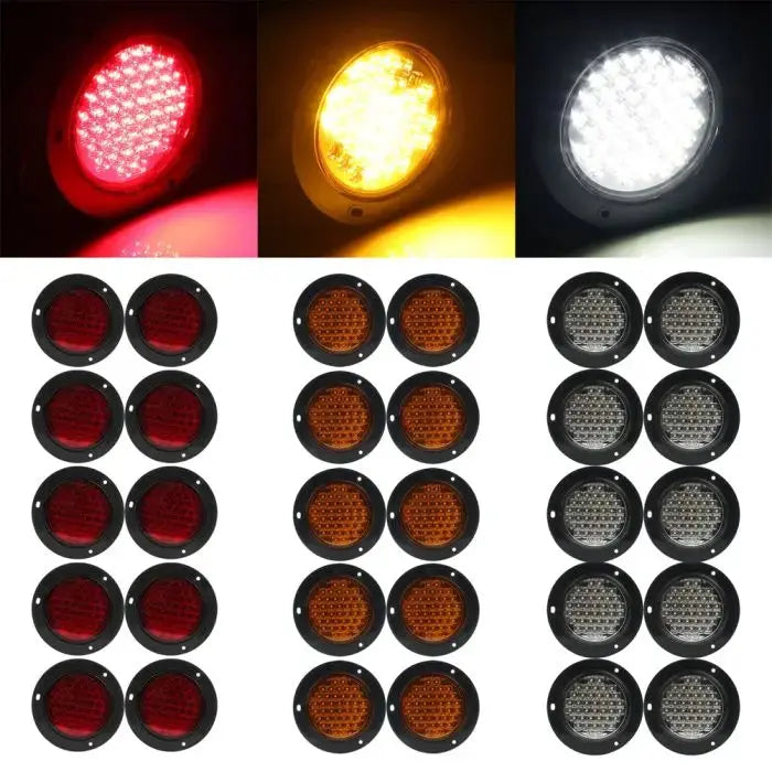 10x 5.6" 40 led RED+10xyellow+10x white 3 holes round tail light car universal