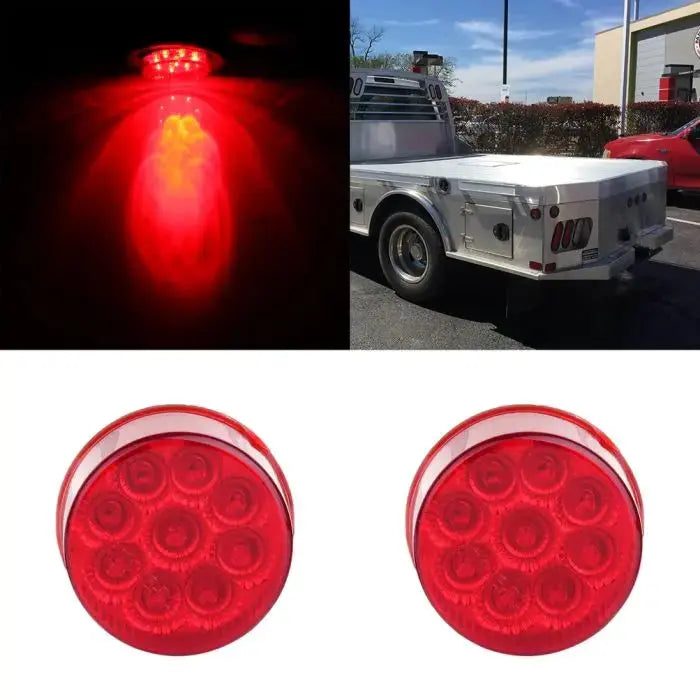 2x 2 inch Round Side Marker tail Light Red 9 LED trailer pickup truck signal