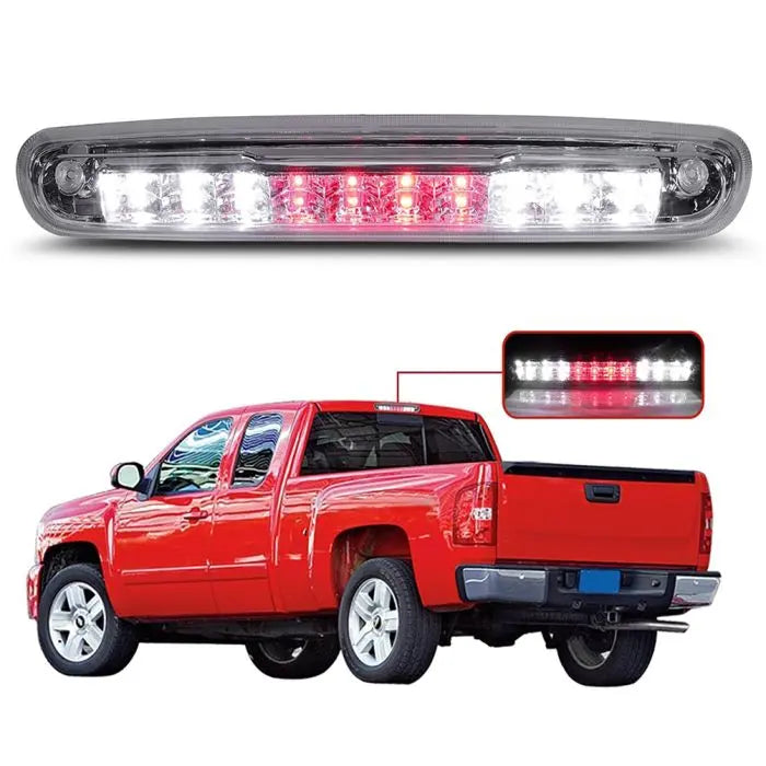 Our LED third brake light is a quick and easy way to dress up your pickup truck. When lit, the bright LEDs (Light Emitting Diodes) are illuminated, and shine up to ten times brighter than standard light bulbs. Even when the brake is not pressed, the integrated cargo light (if equipped) gives off plenty of white light to view your gear in the truck bed. The LED third brake light has a durable polycarbonate lens with free form reflector, and available with either the Chromelens or custom Smoked lens.