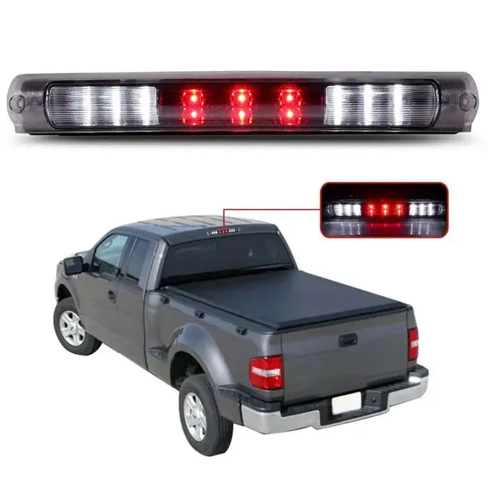 Our LED third brake light is a quick and easy way to dress up your pickup truck. When lit, the bright LEDs (Light Emitting Diodes) are illuminated, and shine up to ten times brighter than standard light bulbs. Even when the brake is not pressed, the integrated cargo light (if equipped) gives off plenty of white light to view your gear in the truck bed. The LED third brake light has a durable polycarbonate lens with free form reflector, and available with either the Chromelens or custom Smoked lens.