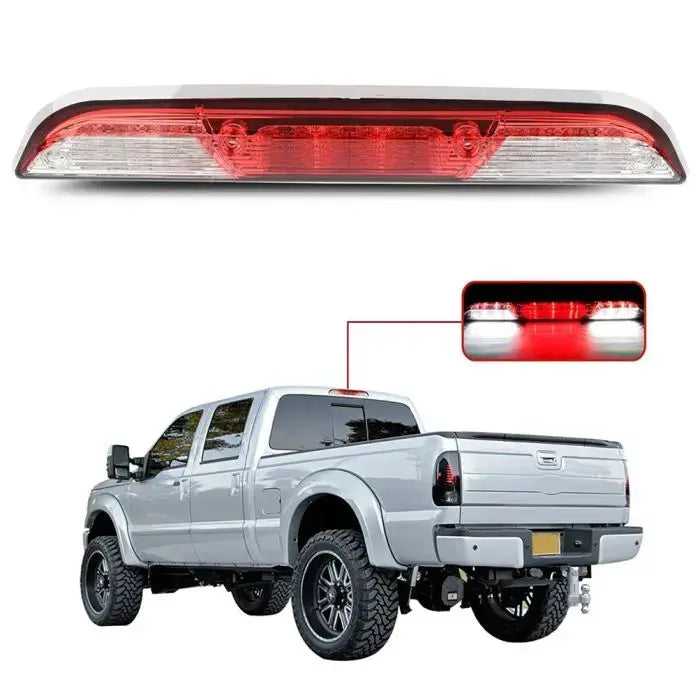 Our LED third brake light is a quick and easy way to dress up your pickup truck. When lit, the bright LEDs (Light Emitting Diodes) are illuminated, and shine up to ten times brighter than standard light bulbs. Even when the brake is not pressed, the integrated cargo light (if equipped) gives off plenty of white light to view your gear in the truck bed. The LED third brake light has a durable polycarbonate lens with free form reflector, and available with either the Clear lens or custom Smoked lens.