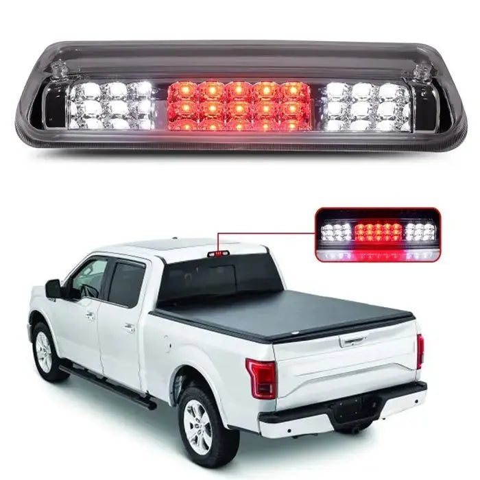 Our LED third brake light is a quick and easy way to dress up your pickup truck. When lit, the bright LEDs (Light Emitting Diodes) are illuminated, and shine up to ten times brighter than standard light bulbs. Even when the brake is not pressed, the integrated cargo light (if equipped) gives off plenty of white light to view your gear in the truck bed. The LED third brake light has a durable polycarbonate lens with free form reflector, and available with either the Chromelens or custom Smoked lens.