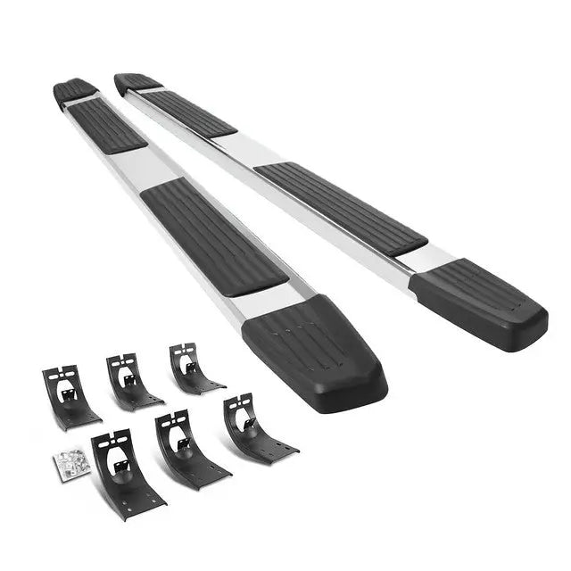 Running boards give your ride a massive boost when it comes to look and utility. Combining the stylish appearance and rugged looks, these inventive running boards are the ideal way to upgrade your truck or SUV. Constructed from high quality grade aluminum frames, you can be sure this running board will withstand the roughest of weather conditions as well as the test of time. They are built tough and are highly corrosion resistant. Getting in and out of your vehicle is easy with the large non-skid molded pads that ensure secure footing. No drill installation! These running boards are very easy to install with the brackets fitting right into the existing factory holes. By not having to not drill in to your vehicle, your time and effort is saved by you.