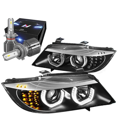 2006-2008 Bmw E90 Crystal Led U-Halo Headlights W/Led Kit+Cool Fan Chrome