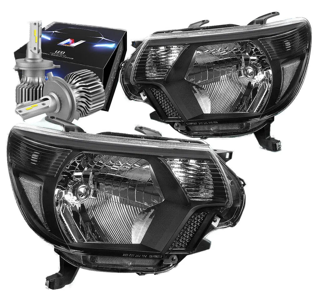 2012-2015 Toyota Tacoma Headlight Lamps W/Led Kit+Cooling Fan Black/Clear