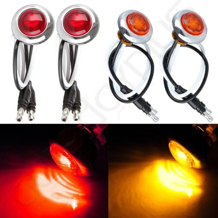 2pcs Amber 3/4" Round Side Marker with Chrome Bezels over Rubber Grommet