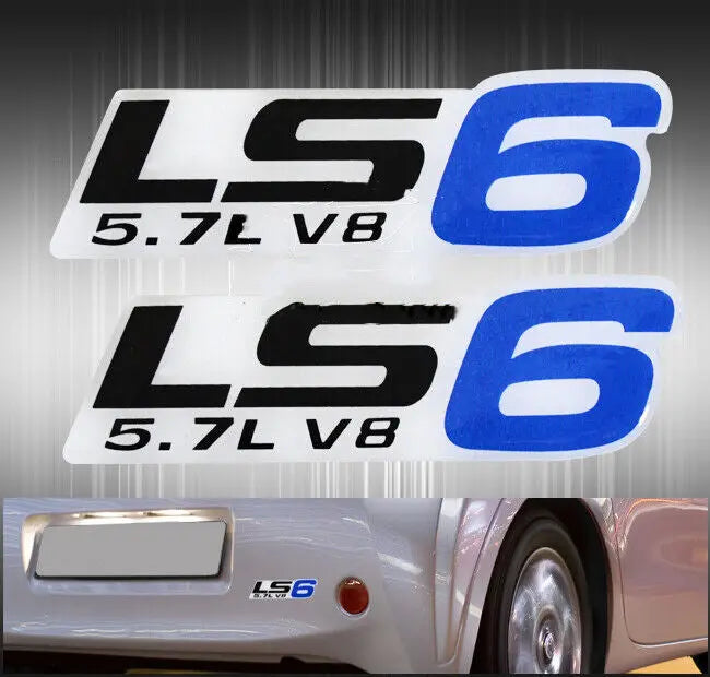 2X Gm Chevy Ls6 5.7L V8 Engine Fender Motor Hood Emblems Decal Badge Blue Black