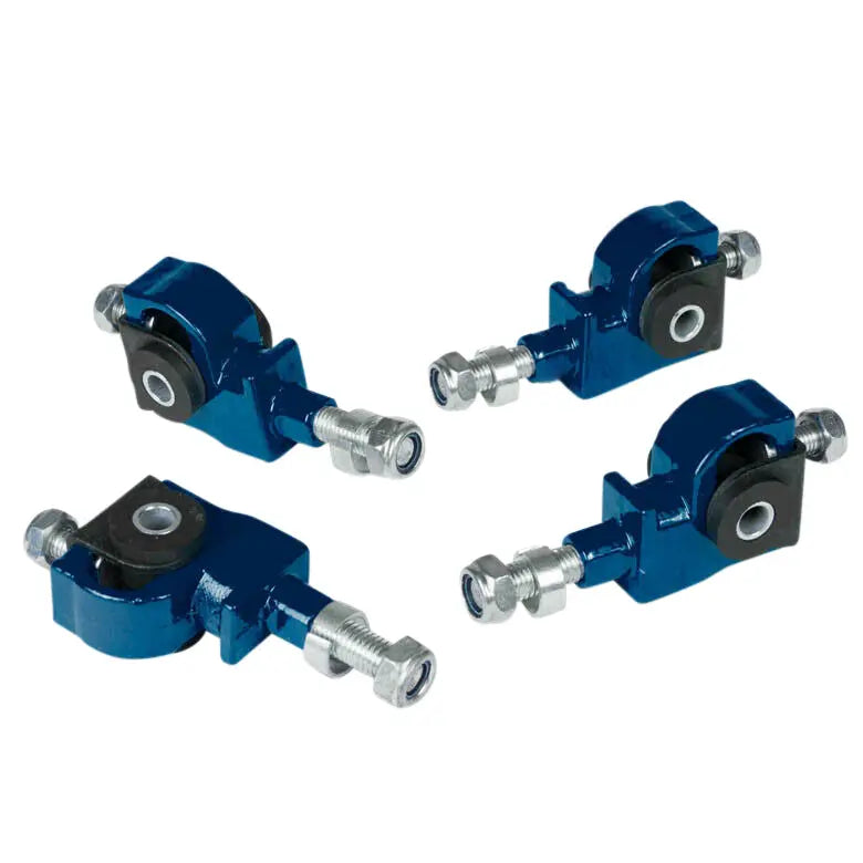 When a car's suspension is upgraded with lowering springs, the result is a lower ride height, a more aggressive look, and better handling due to the lowered center of gravity. While those things are great improvements for the car, the tires suffers from increased wearing and tearing since the tires will slant inwards towards the inside fender. A camber kit will allow the car to remain at the lowered ride height while correcting the angle of the tire closer to the spec it was supposed to be.