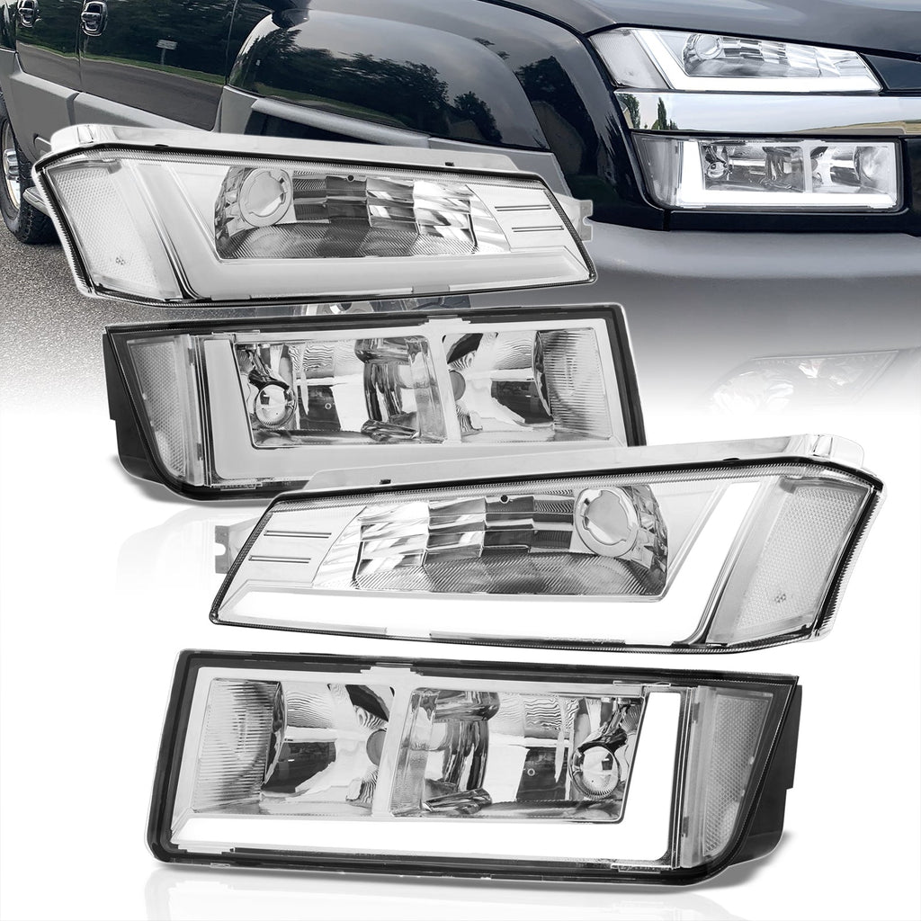 - Direct replacement factory style headlights with LED DRL tubes + bumper lights.