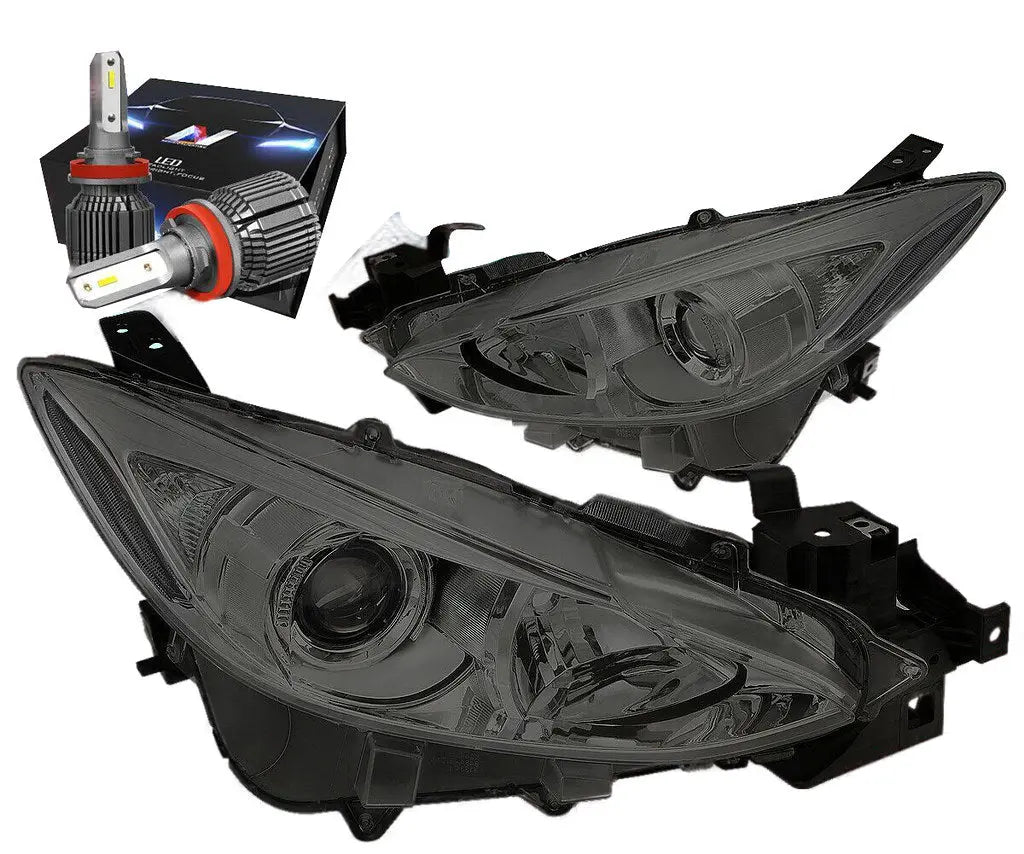 2014-2016 Mazda 3 Bm Projector Headlight Lamps W/Led Kit+Cool Fan Smoked