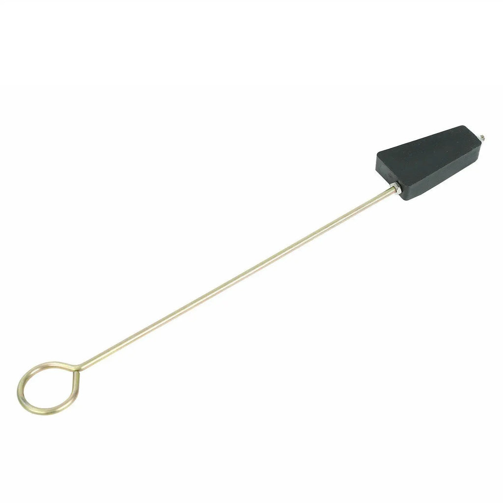 Hard plastic on the end of the tool resists damage from the timing chain; Firm metal rod allows the wedge to get deep enough to do the job effortlessly.