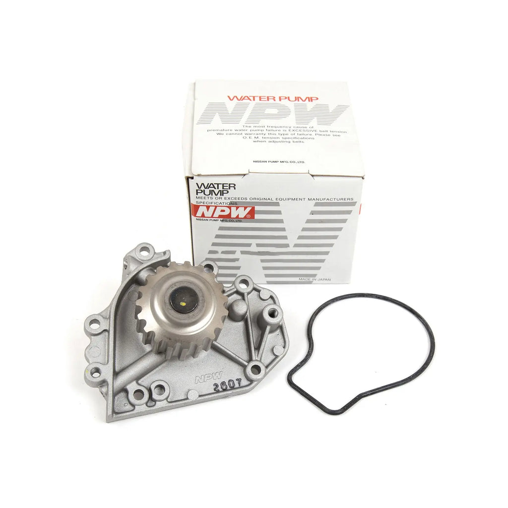 NPW Water Pump Fit Honda Acura CR-V1.8L 2.0L B18B1 B20B4. The water pump plays an important role in your car’s cooling system. Operated by the drive belt, blades on the water pump allow coolant to flow into the engine continually. Although water pumps are built to last, they sometimes break down and require replacement. Timing belt driven water pumps should always be replaced at the same time as the timing belt. Ignoring the replacement of a water pump as a part of scheduled maintenance, could result in major engine failure down the road. You should not wait for your water pump to break, it must be serviced regularly. Be sure to use our water water pump when your car water pump is serviced.