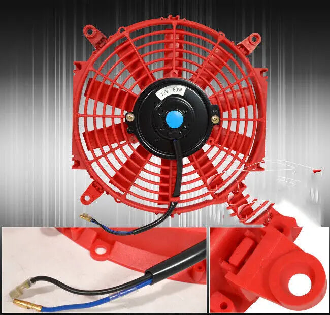 Thin 14" Pull/ Push Radiator Engine Bay Cooling Fan + Zip Tie Kit Red